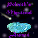 This award is from Polenth. They said: "Congratualations. Your site (Dragonmaid's Santuary) has won Polenth's Mystical Award." Thanks Polenth!